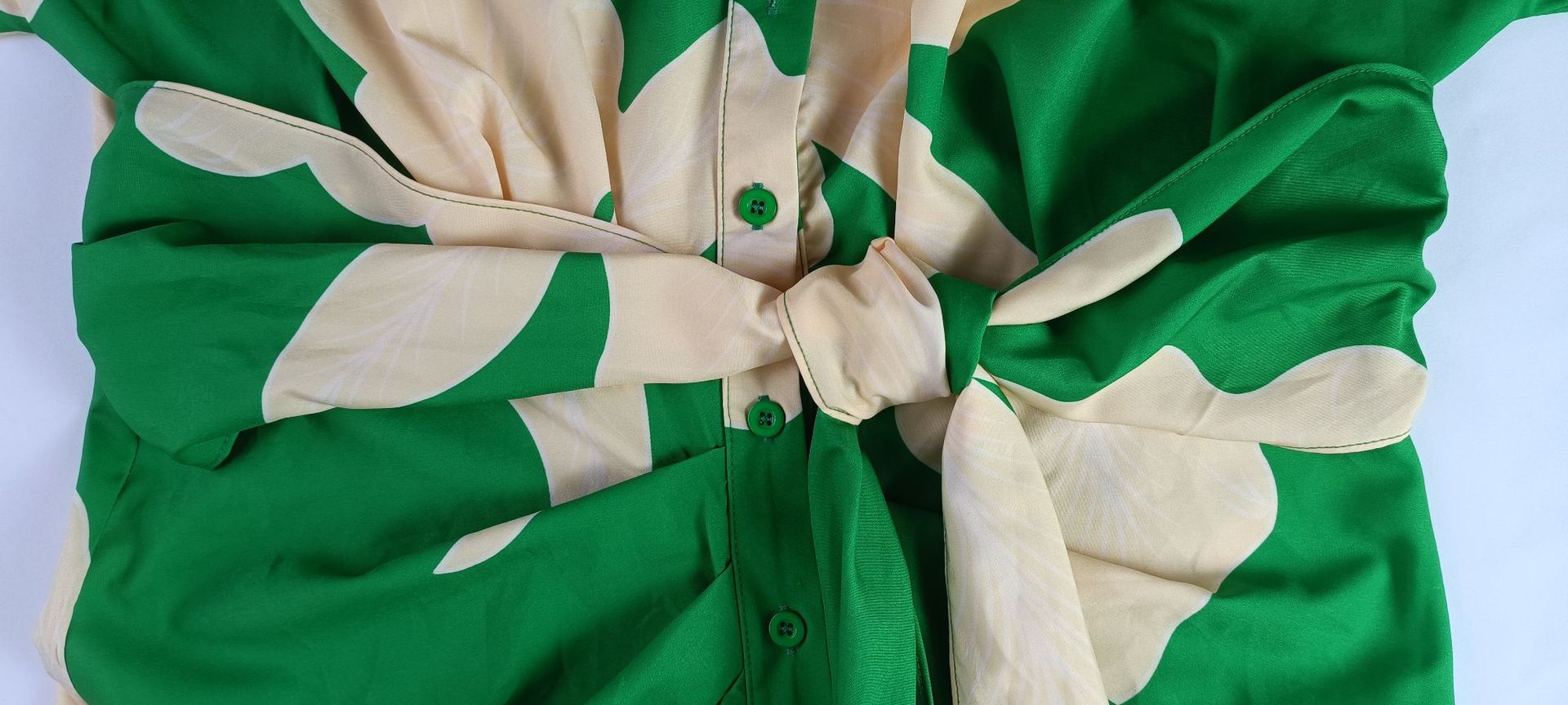 La taille haute structure délicatement la ligne du corps tout en allongeant visuellement la silhouette. La coupe évasée apporte un tombé gracieux et un mouvement léger, tandis que le col à revers ajoute une touche sophistiquée et intemporelle.